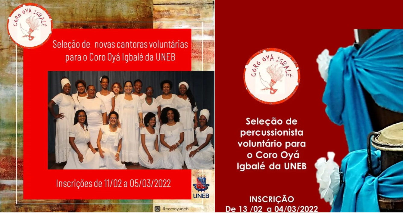 O Projeto Coro Oyá Igbalé do Departamento de Educação do Campus I da UNEB seleciona em 2022...